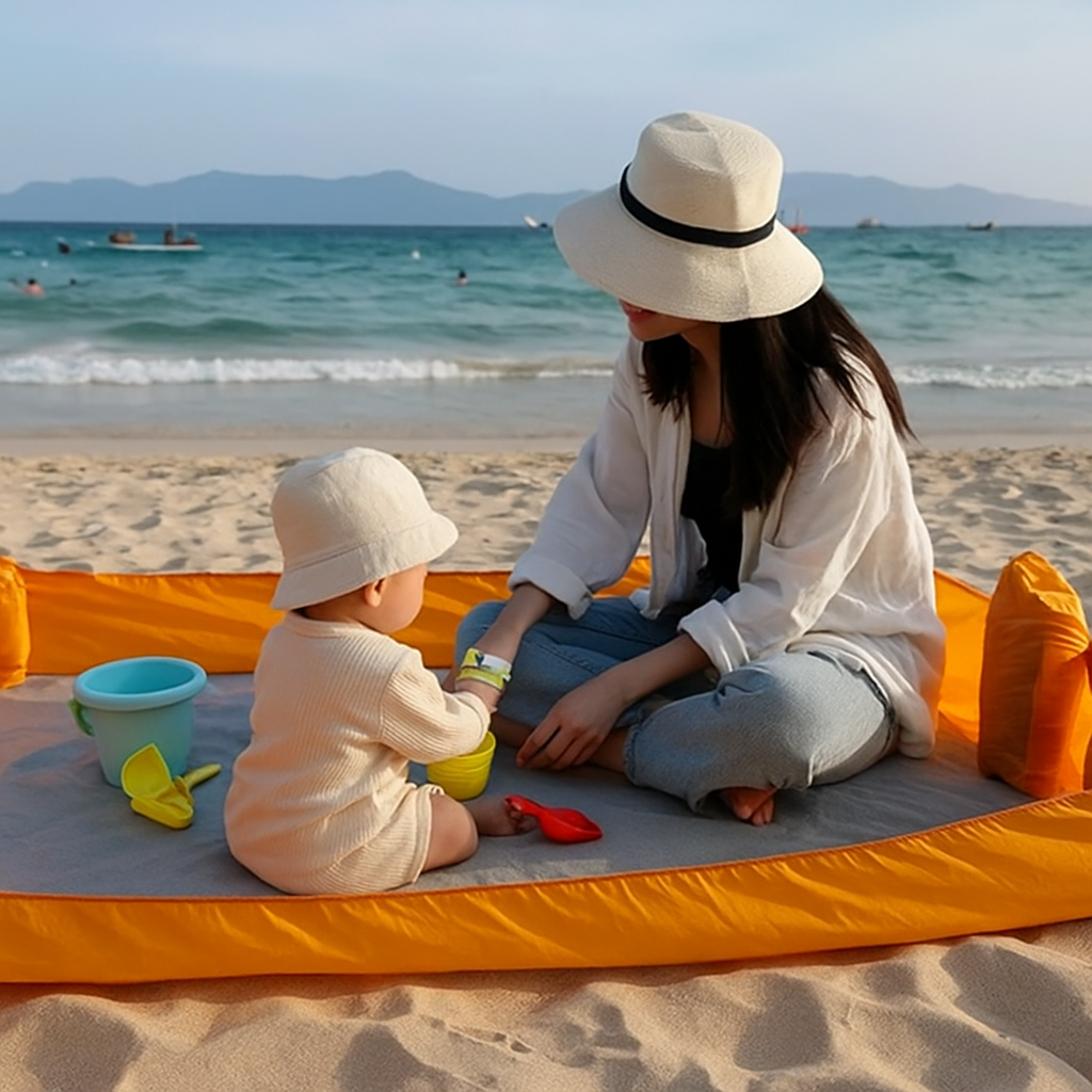 La manta antiarena evita que la arena cubra tu comida y pertenencias. Con un diseño patentado, los protectores de arena bloquean eficazmente la arena, permitiéndote disfrutar al máximo de la playa sin preocupaciones.